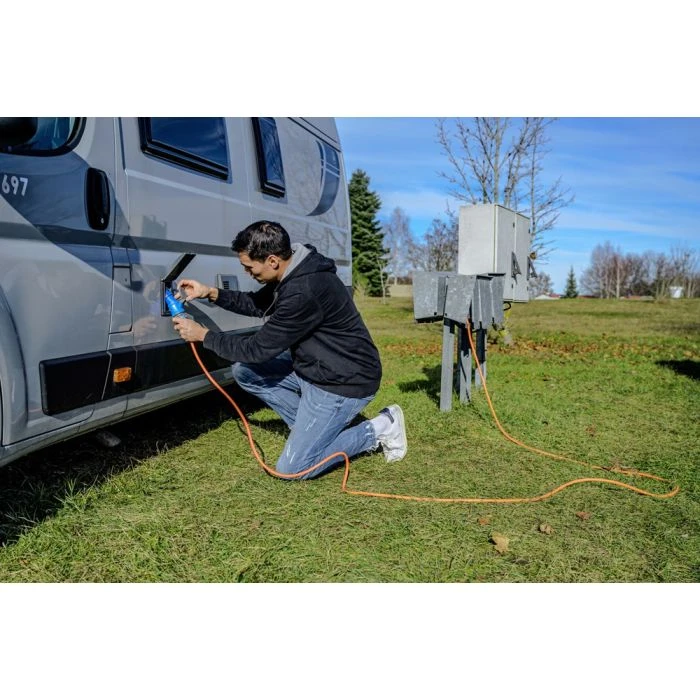 De Camping Verlengkabel van Brennenstuhl in de kleur oranje en 25m kabel overtuigt door zijn kwaliteit en veiligheid op alle gebieden. Dankzij de speciale rubberen kabel is deze ideaal voor gebruik op de camping of voortdurend gebruik buitenshuis. Bovendien overtuigt de CEE Kabel met de volgende eigenschappen: Kabel kwaliteit: rubber neopreen CEE-stekker en koppeling met afdichtklep Kabelaanduiding: H07RN-F 3G2.5 Stekker systeem: CEE 16A 2P+PE (3p) 230V Stekkersysteem CEE-contactdoos/ CEE-koppeling: 1x CEE 16A 2P+PE (3p) 230V
