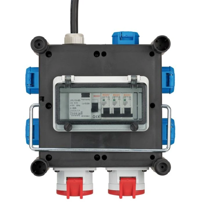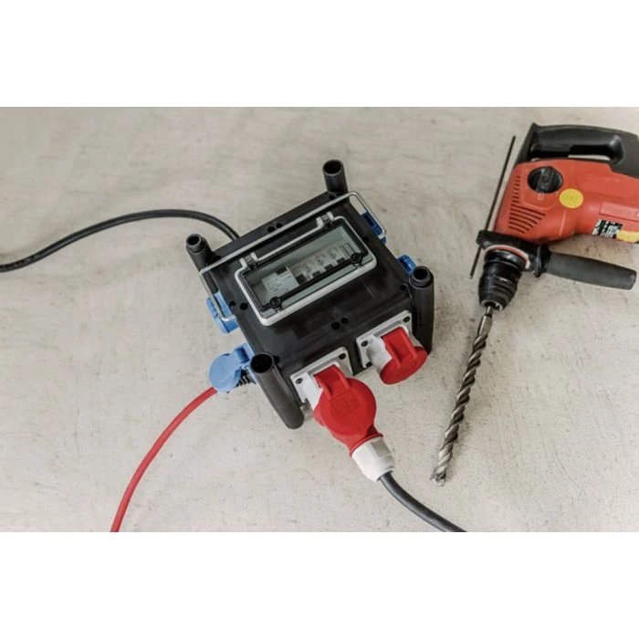 De compacte rubberen stroomverdeler van Brennenstuhl in de kleur zwart en 2m kabel overtuigt door zijn kwaliteit en veiligheid op alle gebieden. De praktische en uiterst robuuste stroomverdeler is ideaal voor gebruik op bouwterreinen of permanent gebruik buitenshuis. Het overtuigt ook met de volgende kenmerken: Kabelbenaming: H07RN-F 5G2.5 Stekker: CEE 400 V/16 A 5-polig/pin Contactdozen: 2x CEE 400 V/16 A 5-polig, 5x 230 V/16 A Zekering: 3x LS 230 V/16 A 1-polig/pen, 1x FI 40 A 4-polig/pen, 30 mA Voor permanent gebruik buitenshuis – IP44 Temperatuurbestendigheid van de behuizing: -30°C tot + 80°C Kwaliteit contactdozen volgens VDE 0620-1 Stevige metalen draaggreep Beschermende contactdozen verdeeld over 3 afzonderlijke fasen