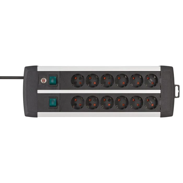 Brennenstuhl Premium-Alu-Line Techniek Stekkerdoos 12-voudig Duo Zwart 3m H05VV-F 3G1,5 De Stopcontacten Zijn Sch