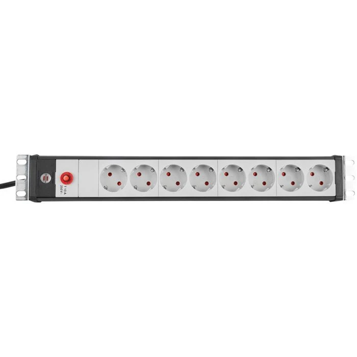 De 19″ Premium-Line 8-voudige stekkerdoos van Brennenstuhl in de kleur zwart/lichtgrijs en 3m kabel overtuigt door zijn kwaliteit en veiligheid op alle gebieden. De stekkerdoos heeft niet alleen een hogere contactbescherming, maar maakt ook indruk met de volgende kenmerken: 19″ breed en 1.5U hoog Voor installatie in 19″ netwerk- of serverkasten Stevige, fraai gevormde compacte strip van zeer breukvaste speciale kunststof Beschermende contactdozen in 45° opstelling, ook voor haakse stekkers Wandcontactdoos met randaarde met hogere contactbescherming Automatische stroomonderbreker 10A, rood Kabellengte: 3 m Kabelaanduiding: H05VV-F 3G1.0 Nominale stroom: 10 A Extra uitrusting: Met stekker voor koud apparaat, speciaal voor gebruik met UPS