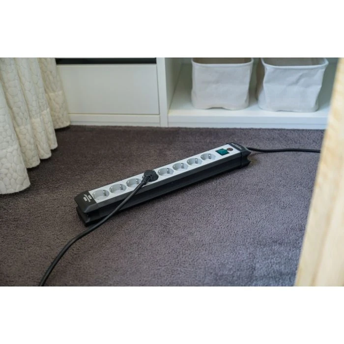 De Premium-Line 8 voudig stekkersoos van Brennenstuhl in de kleur zwart/grijs en 5m kabel overtuigt door zijn kwaliteit en veiligheid op alle vlakken. De vormvaste en stabiele behuizing is gemaakt van zeer breukvast speciaal kunststof. Het heeft niet alleen een hogere contactbescherming, maar overtuigt ook met de volgende kenmerken: Contactdozen in 45°-opstelling, ook voor haakse stekkers Veiligheidsschakelaar verlicht, dubbelpolig aan/uit-schakelbaar Praktische kabelhouder Met ophanginrichting Innovatief bevestigingsconcept