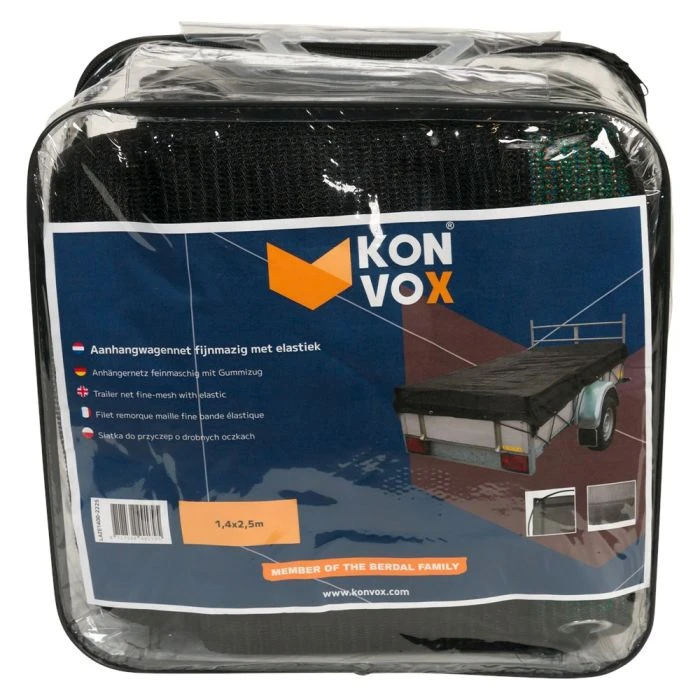 Konvox Aanhangwnet Fijnmazig Met Elastiek 1,4×2,5m Zwart