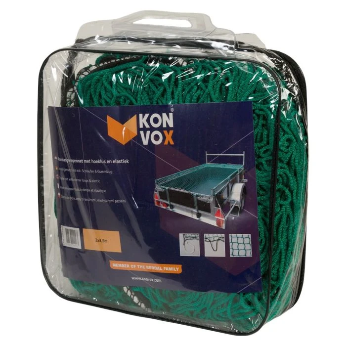 Konvox Aanhangwnet Met Hoeklus En Elastiek 2×3,5m Groen