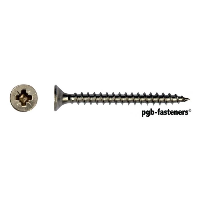 De schroeven zitten per maatvoering in een stevig klapdoosje verpakt met kijkvenster. Het zijn RVS schroeven ( A2 kwaliteit ), zonder bramen en voorzien van PZ (kruiskop) indruk.