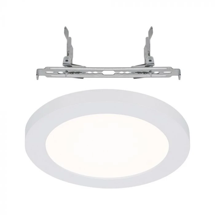 Het witte inbouwpaneel met een vermogen van12 watt heeft een zeer geringe inbouwhoogte en is daarom te monteren in verlaagde plafonds met een diepte van de holle ruimte van minimaal 20 millimeter. Het paneel laat zich via een verstelbare rail met klemveren in uiteenlopende inbouwdiameters plaatsen.