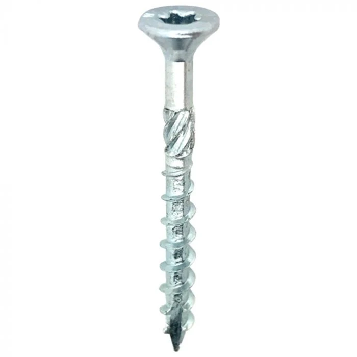 Hierdoor wordt het materiaal geruimd, waardoor de kop beter verzinkt. (Uitzondering hierop vormt de scharnierschroef. Deze beschikt niet over de freesribben om beschadiging aan scharnieren en ander beslag te voorkomen.)